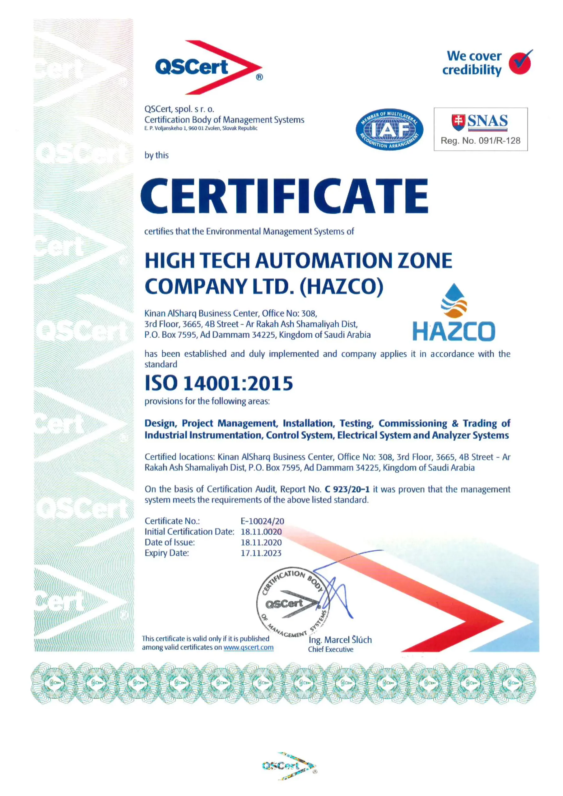3. HAZCO senior management are committed to ensure that protection of the environment is firmly embedded in both the company’s and all the employee’s culture and will endeavor to influence it suppliers and customers in a similar strategic environmental manner.